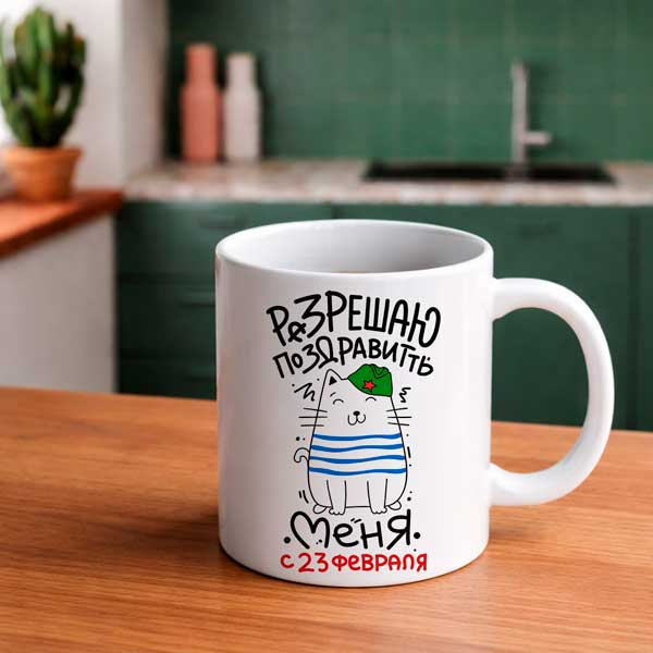 • “Подарок для мальчиков и коллег на 23 февраля: кружка “Разрешаю поздравить меня””